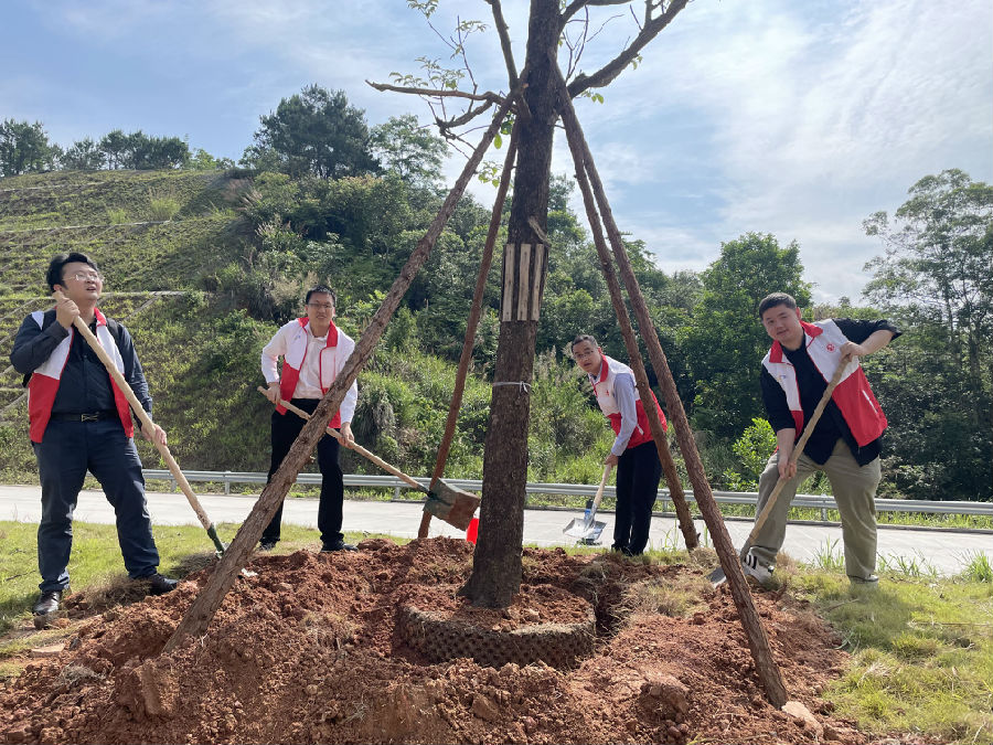启动仪式结束后,参会人员来到义务植树造林活动现场,与当地乡贤、党员、志愿者一起锹铲土、填坑夯苗、提水浇灌,合力栽下572棵树苗。